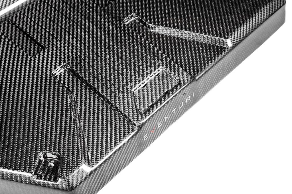 The X3M / X4M intake setup from BMW although awkward at first sight, is a very well designed system in the given space available. The flow path from the filters to the turbo inlets is very direct and does not change direction as abruptly as the usual OEM airbox designs. So instead of a complete redesign we focused on improving the OEM airbox with less restrictive flow and improved temperature efficiency. We have developed replacement drop in filters made from non-woven mesh which have a much higher flow rate as compared to the stock paper filters. To help reduce inlet air temperatures and force air into the airbox we designed large front scoops which sit behind the grills. The carbon scoops channel air into the ducts and effectively effectively de-restrict the inlet side of the airbox. The final piece is the carbon airbox lid which although doesn’t add to the performance, it does allow for a more audible induction sound and gives the engine bay a much needed aesthetic improvement.