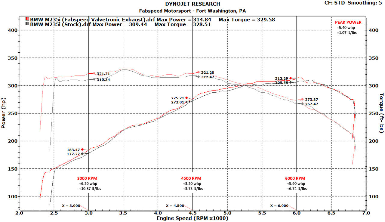 - Fabspeed = 315 whp (wheel horsepower) / 329 ft/lbs